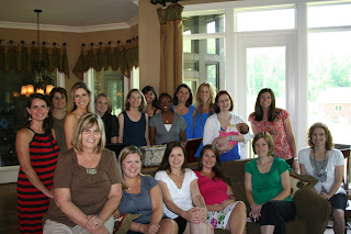First of all, I feel like such a slacker that it's taken me over 2 weeks to get these pictures on here. I had the best time at my shower and am sooooo grateful to my wonderful friends who hosted it for me and all of those who attended. My mom, sister and best friend Becky even came in town from Nashville, making the day even more special!!! Everything was so simple and elegant and the food was amazing!! Even though this was my second shower and supposed to be a "diaper and doo dads shower" everyone went way overboard and bought me (Carter) some great gifts! Thanks so much to everyone who made it possible and came to celebrate with us! The blanket my mom (Mimi) knitted for Carter! So special to me! I know I look huge but Kelli looked too pretty not to post this! Lisa Denise and Marissa My sister, mom and Becky.........(I wish I was in this one :( I think my mom looks so pretty here! There's baby Carter!! Stephanie and Mandi, looking equally hot in that dress! my best friends, Dena and Maggie!!!!