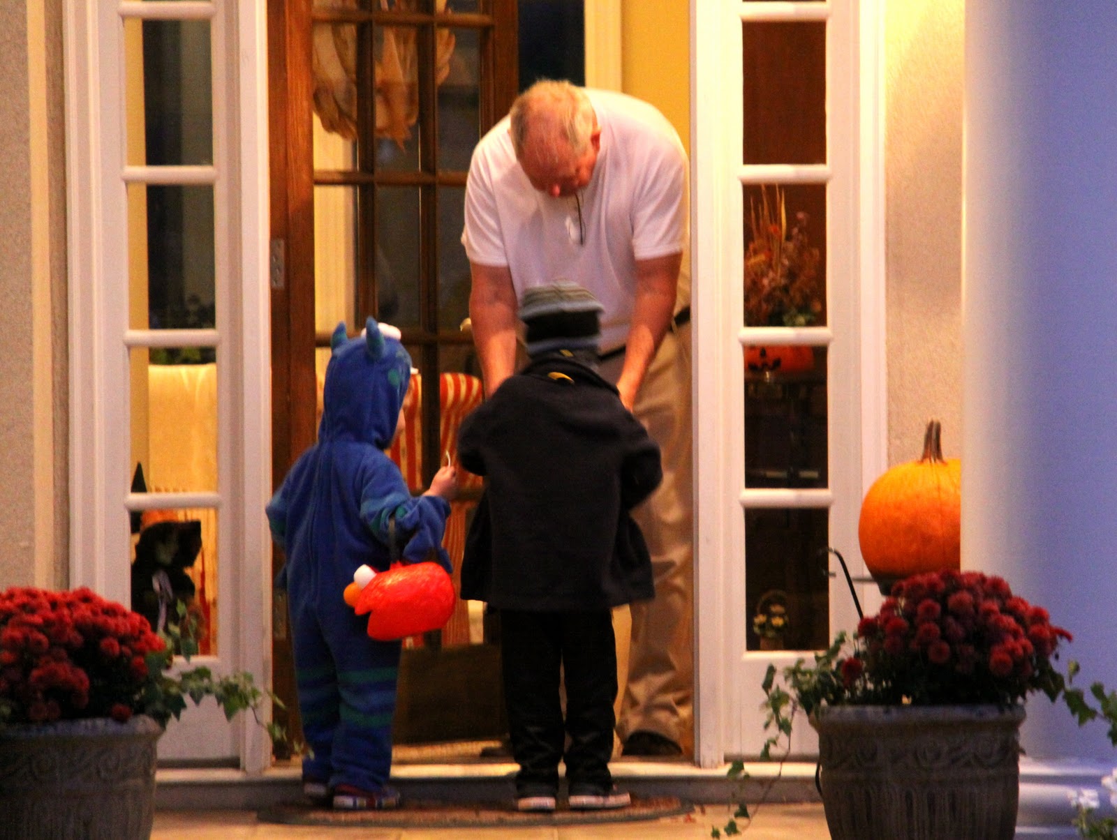 Halloween was soooo much fun this year! My boys were both old enough to enjoy it and trick or treat together!! We started out at the neighborhood party then made our way up our street for some candy. Carter was so cute trying to say trick or treat, then he would promptly ask them for more as soon as the filled up his bag..... greedy little fella! After we made it up to our house, the boys hadn't had enough (of the candy or the cold) so Chad took them back out for more while I stayed in the warm house and ate their candy!
